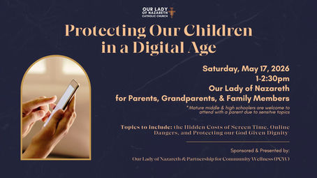 We the parish family of Our Lady of Nazareth, are united by our commitment of service to others as living witnesses of the life, death and resurrection of Christ as taught by the Scriptures and His example. Join us in person for mass on Saturdays at 5pm or Sundays at 7:30, 9:00, and 11:30am. You can watch on YouTube at 5pm on Saturday.
